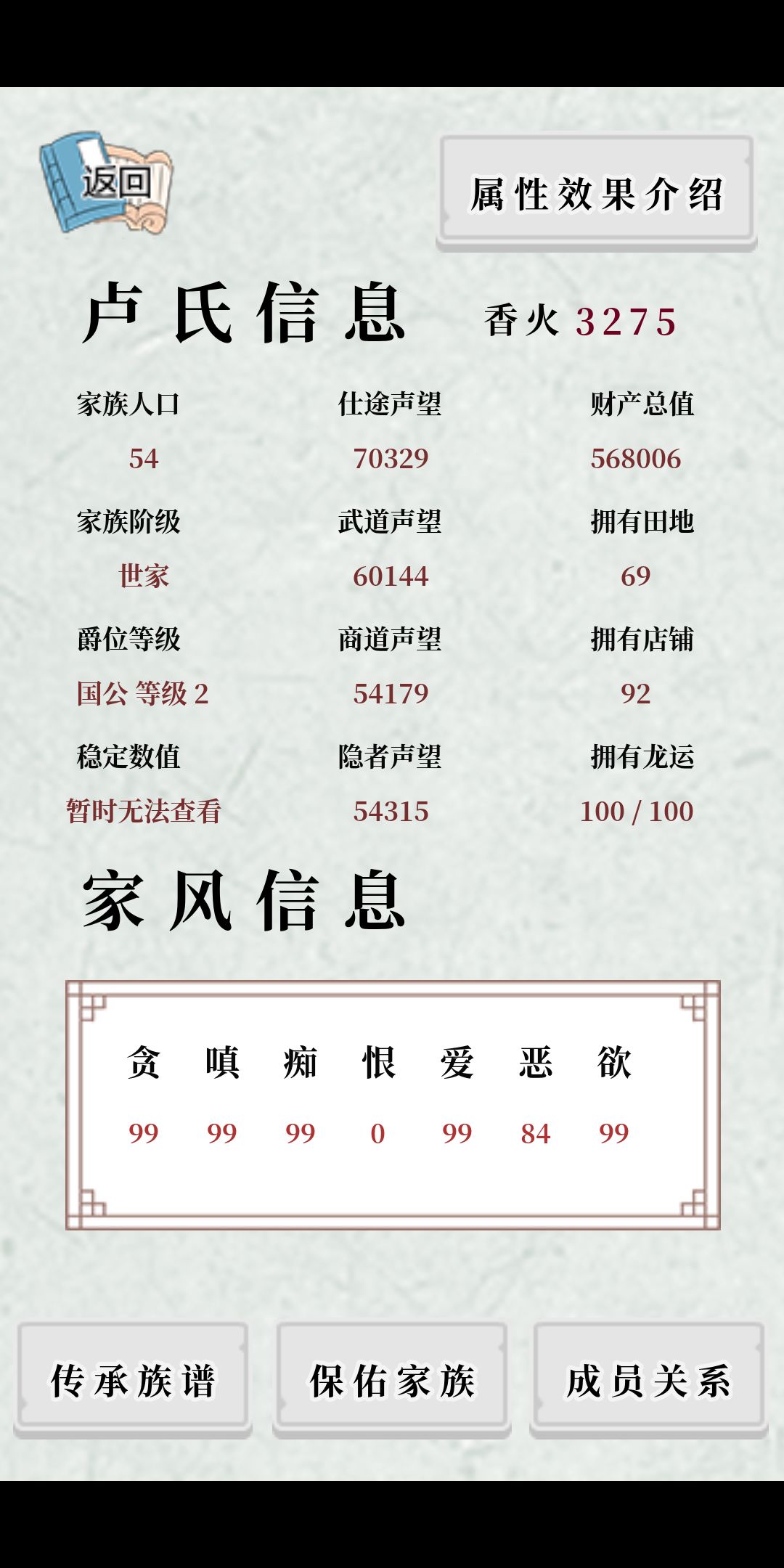 3,关于人口问题,人口这个东西吧,不当皇帝之前分家都不用点,赞着就行了,每回合1000多香火多爽。不过记得留1000香火保底,万一家族除了变故死光了还有机会延续。