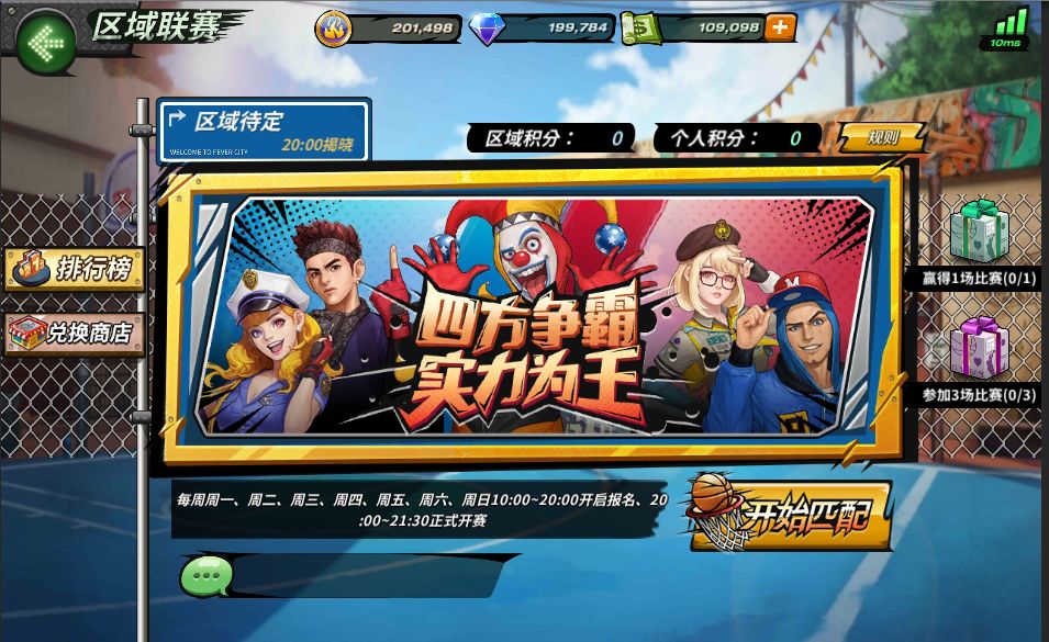 玩家可以在区域联赛大厅领取胜场宝箱奖励和参与宝箱奖励,还可以积分兑换奖励。
