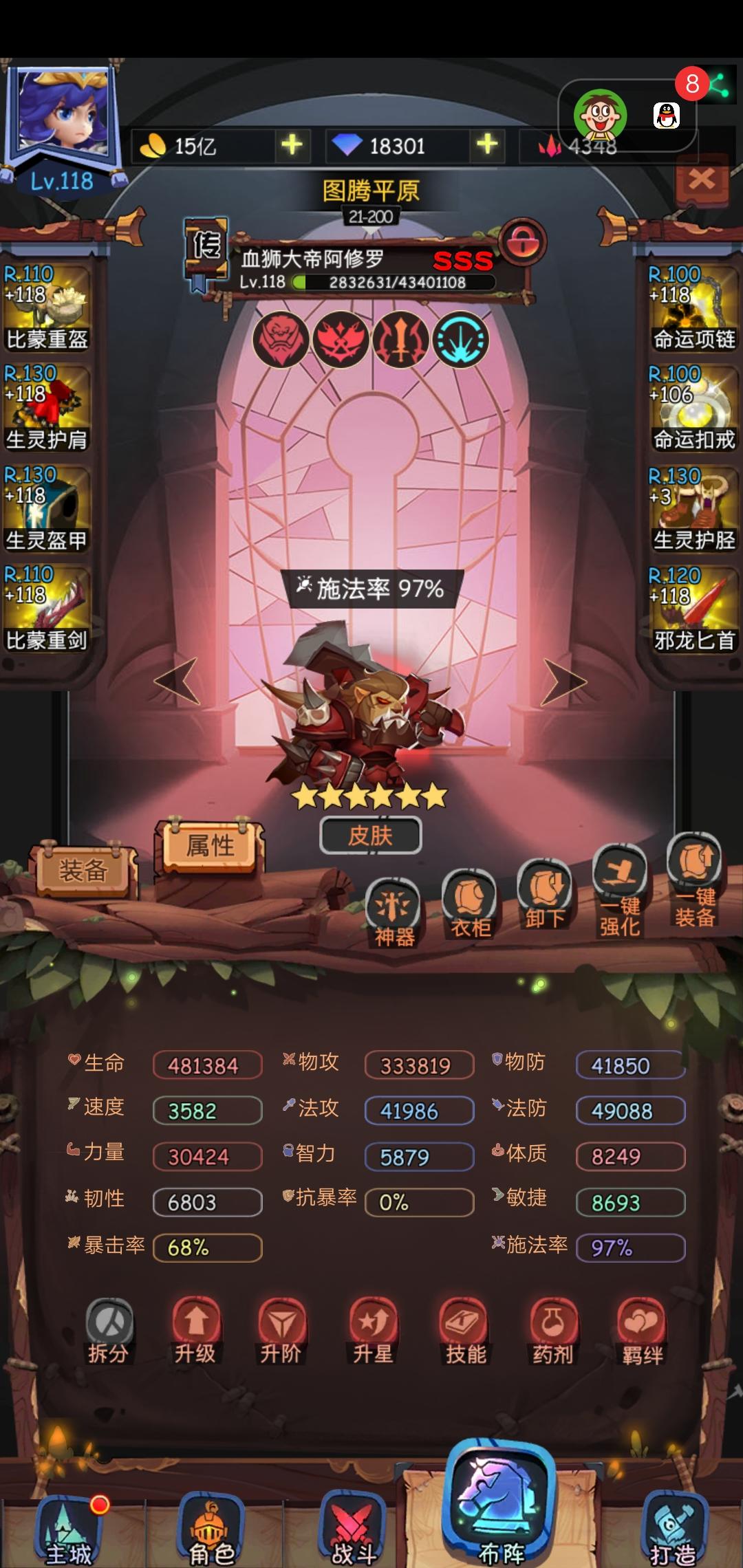 稳定的就是狮子第一回合吃到元素和喜乐伤害打出无敌伤害最大化,没吃到元素的伤害也没事,这还有大树嘛,然后星辰不死解了大树和元素的控制,男主和女皇沉默后排,