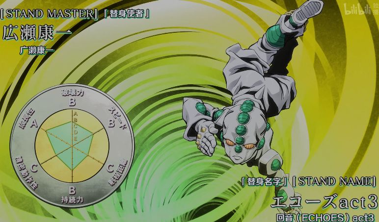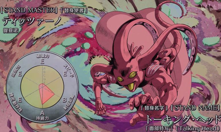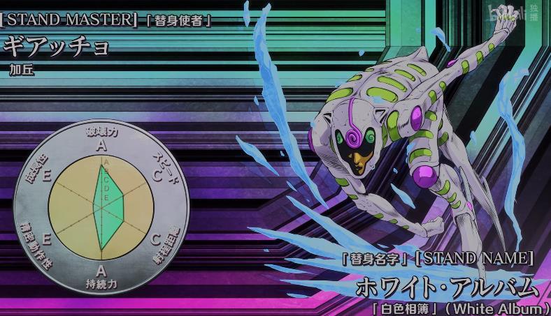 替身能力:可以像录放影机一般将人物过去的事物录下来,重新播放,但根据距今时间的不同所需的回放时间也会不同