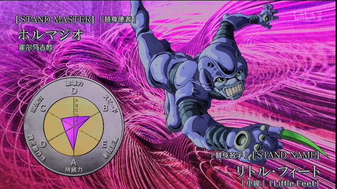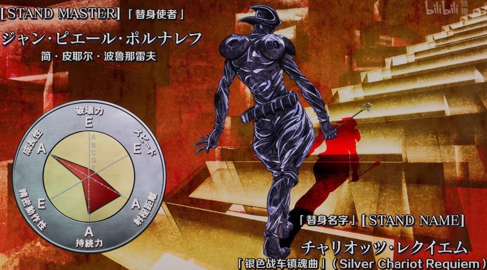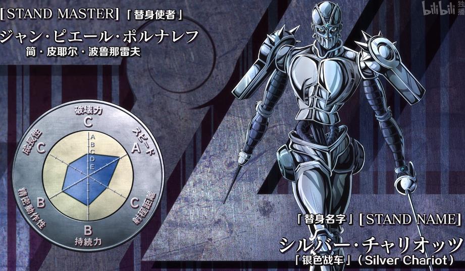 替身能力:速度极快,可制造出多重影分身,利用西洋剑进行高超的剑技攻击,卸下盔甲速度还能提高