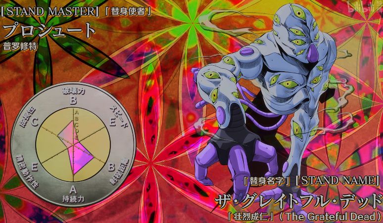 替身能力:可以消除世界的时间,并在此消除的时间内行动,消除时间后,除了本体以外没有人会有此段消失时间的经验与记忆;由删除时间衍生出的另一个能力:[墓碑],可以预见几十秒后的未来,但不可改变未来,预测到的事一定会发生