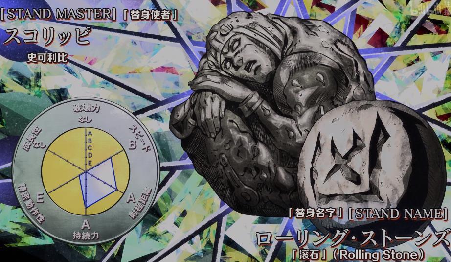 替身能力:会变成“注定要死”之人死时的模样,并自动追踪该人,此人若碰触到该石头会毫无痛苦地提早死去