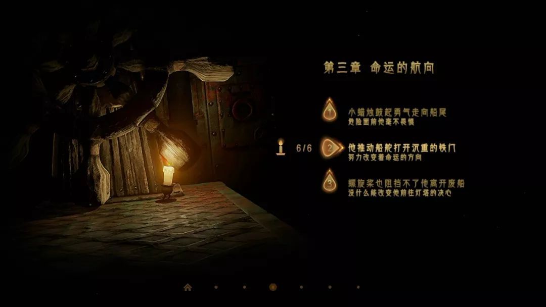 点燃第三根蜡烛后,跳上左边有船舵的地方,然后向下面走,可以看到蜡烛,这时点燃蜡烛进行存档。
