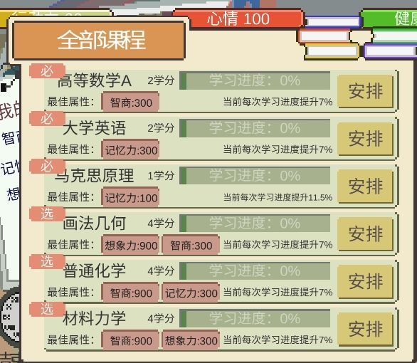 关于学习:符合最佳属性学习的时候效率最高!保证别挂科情况下,先培养属性再学习,如果能一天学完就学完,有每日加成,全部都是良还不如一个优其他全是及格,良没屁用,优用处大于天。