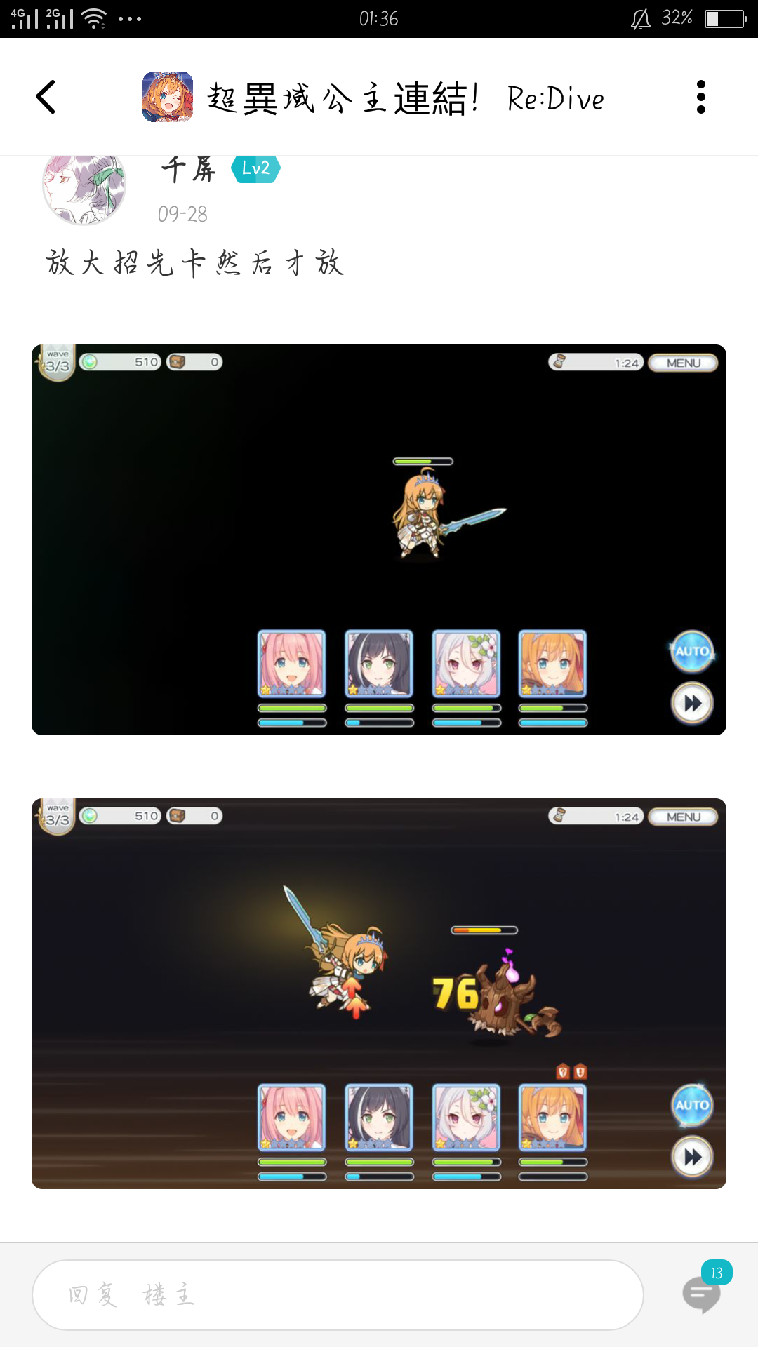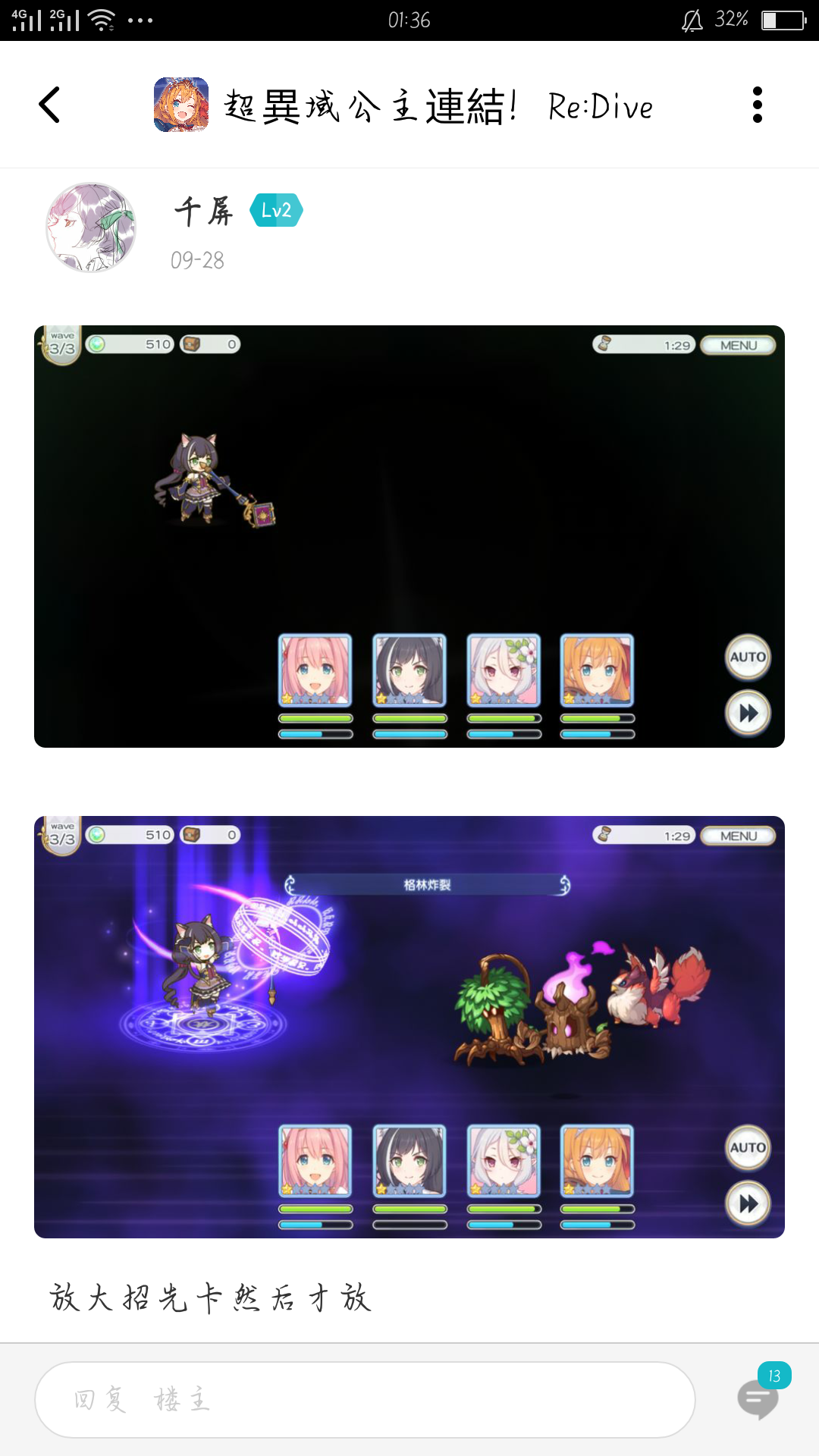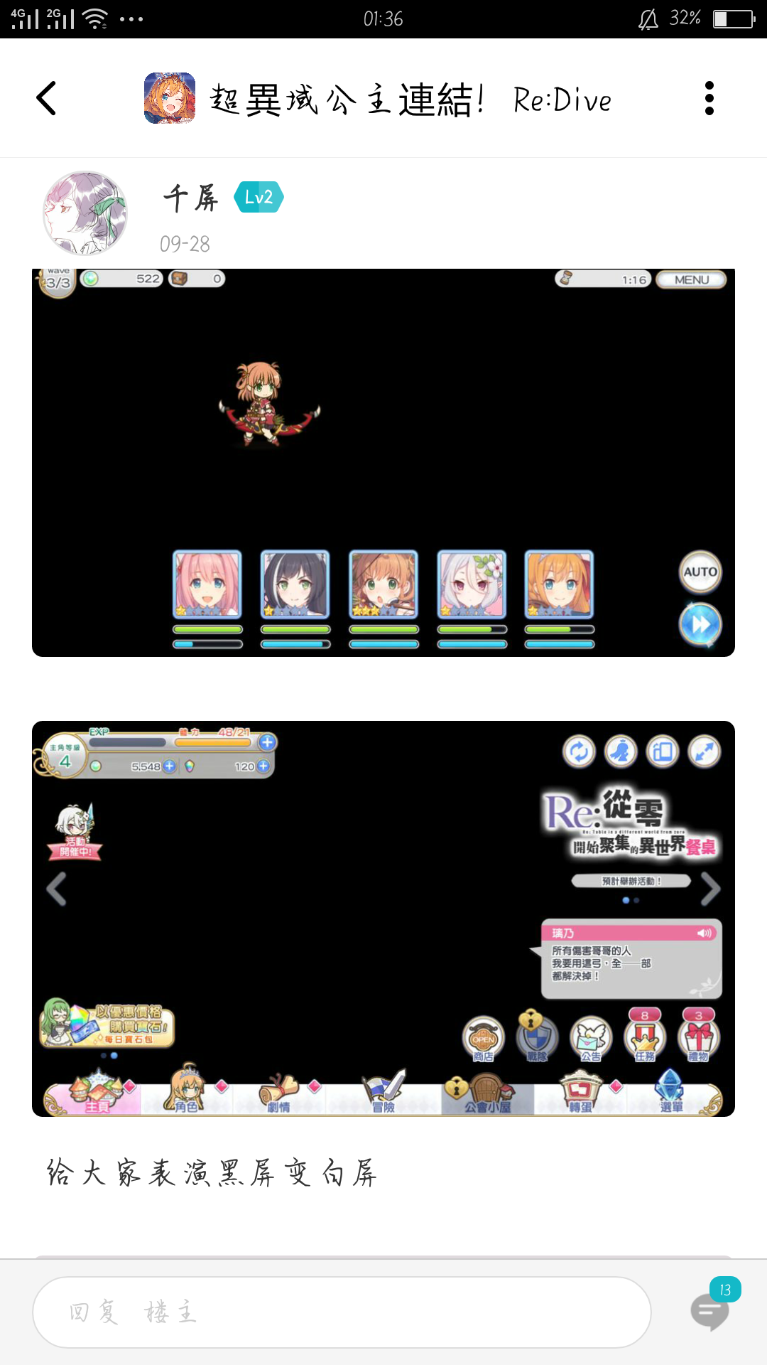 如题我曾经入过台服和日服,虽然日服没下数据只是测试了一个“bug”还在不在。以下图都是我遇到的“bug”,好在TaP有个人告诉了我是手机的版本太低,我希望一下国服我可以玩,毕竟我好喜欢这种游戏的。这些“bug”我的Tap主页上有具体时间是9月28号那条帖子,以下是“bug”介绍p1-p2是黑屏,p3-5即大招时没有动画然后是要一卡一下才可以放大招没动画噢,还带了一个进去之后也黑屏的事。p6是抽卡时,没有那个人物的跑动画只有黑屏的瞎点,至于我手机是OPPOR9又没有钱买新的故事。