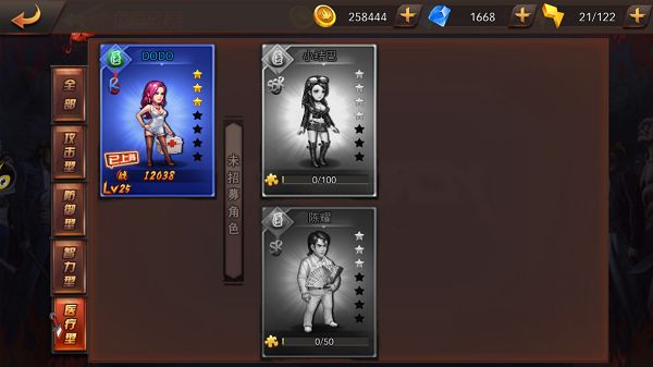 角色分为四种类型,攻击型是物理输出,智力型是谋略输出,防御型是肉盾,医疗型是奶妈。