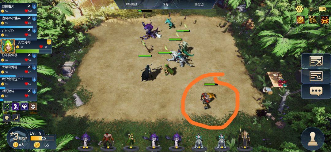 放在最后一排,有时候会打另一个战斗的棋子。当天也遇到被另一个战斗的