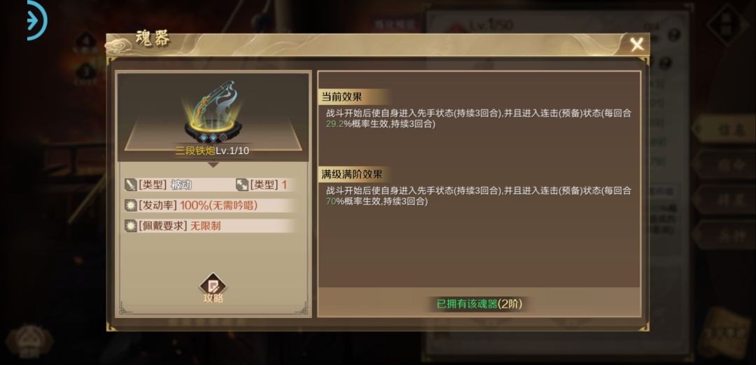 冲突原因:三级铁炮和远征战记都是在战前准备回合发动的,而这个时候并没有第几回合连击的概念(因为正式回合还没开始),因此先挂一个状态:“可以进行2次普通攻击”,当释放完三段铁炮后有了这个状态,因此远征战记的效果未附加。