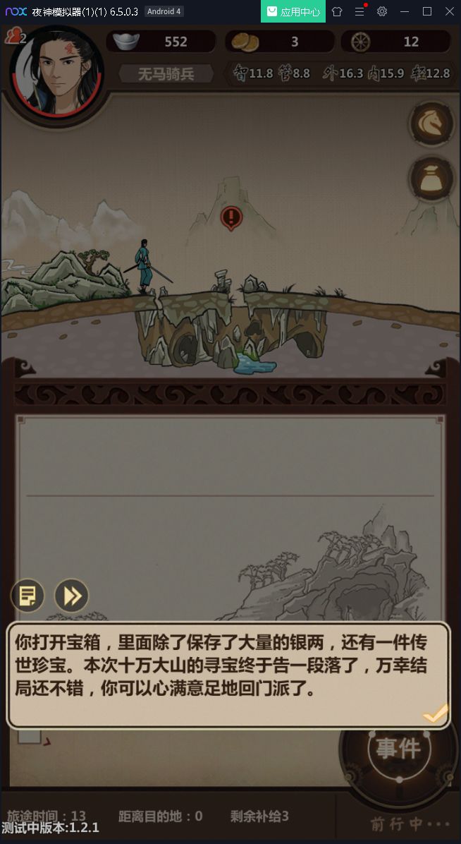 第一次带加补给的烹饪1-2个,第二次带两个血药,两次就可以了,第一次要在店里买东西,然后找老板打听消息然后买宝图,买了宝图去找知寨问话,风水那里选运气,5两转运然后买司南,古玩可以买(去通商卖,必赚)然后最好能到烧毁的村庄拿钥匙(最后宝箱要内功高可以不用钥匙,我就是没钥匙震开的)。