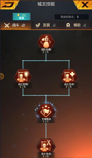 缺点:战斗型技能虽然能够给军队带来不错的加成,不过却不能给基地加成。对于资源的生产,基地的建设起不到任何的帮助作用。
