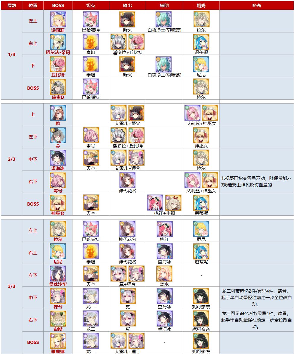 可根据练度自行替换部分角色。