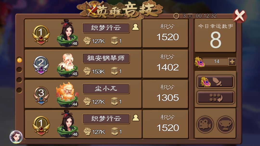 试剑台这里给大家着重介绍第二个,英雄竞技,这里涉及到将面的知识。灵台论剑相当于打木桩,只能测试你的极限伤害,并不能代表你的整体能力,而后面的两个功能一个暂未开放,有待更新,另外一个是下注发财,与测试无关。所以英雄竞技是测试大家阵容最好的地方。