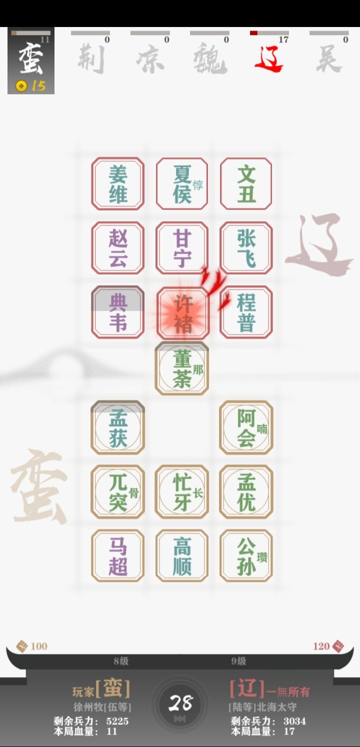 6骑马超比吕布难出。。。这是六骑最大难点。相反,南蛮6傻很好出而且炼狱速起也容易。南蛮优点在于不需要爬人口可以囤积经济到50其次,想速3星6南蛮走低民心高士气法很容易让绿皮和孟获上3。。。。另外祝融直接不要ヽ(≧Д≦)ノ哪个无敌蛮王根本没意义,一般不是超级非酋,20回合6南蛮基本有4到5个上三。。。这时候还是稳点保经济在50然后补满3星,后可以考虑9南蛮有多余孟获补孟获吃孟获满缘收益。。。另一种就是补3骑3军师。。。因为南蛮比较怕6军师的无脑控制和6骑的爆发,补3军师可以反控清后排补3骑是为了弥补南蛮爆发不足。。。快速带人破对面阵容