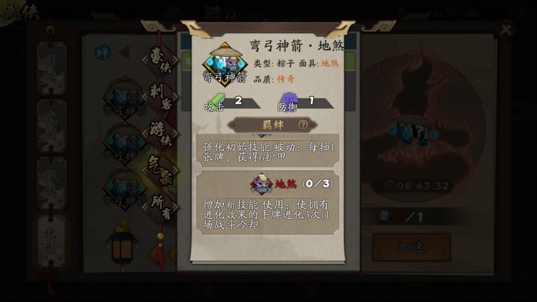 郭大侠的地煞红这个属于究级射箭的范畴了,萌新可以直接跳过,没有也能玩。但究级射箭一成型就是无敌,萌新切勿尝试,除非决定死磕射箭(的确可以死磕)。