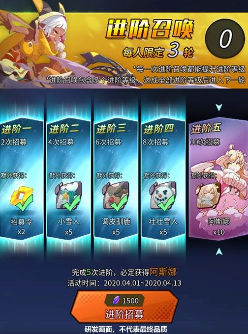 2.「限时招募」活动上线,每完成一轮限时招募可额外获得:「招募令」x2,「小雪人」碎片x5,「调皮驯兽」碎片x5,「壮壮雪人」碎片x5以及「阿斯娜」碎片x10。