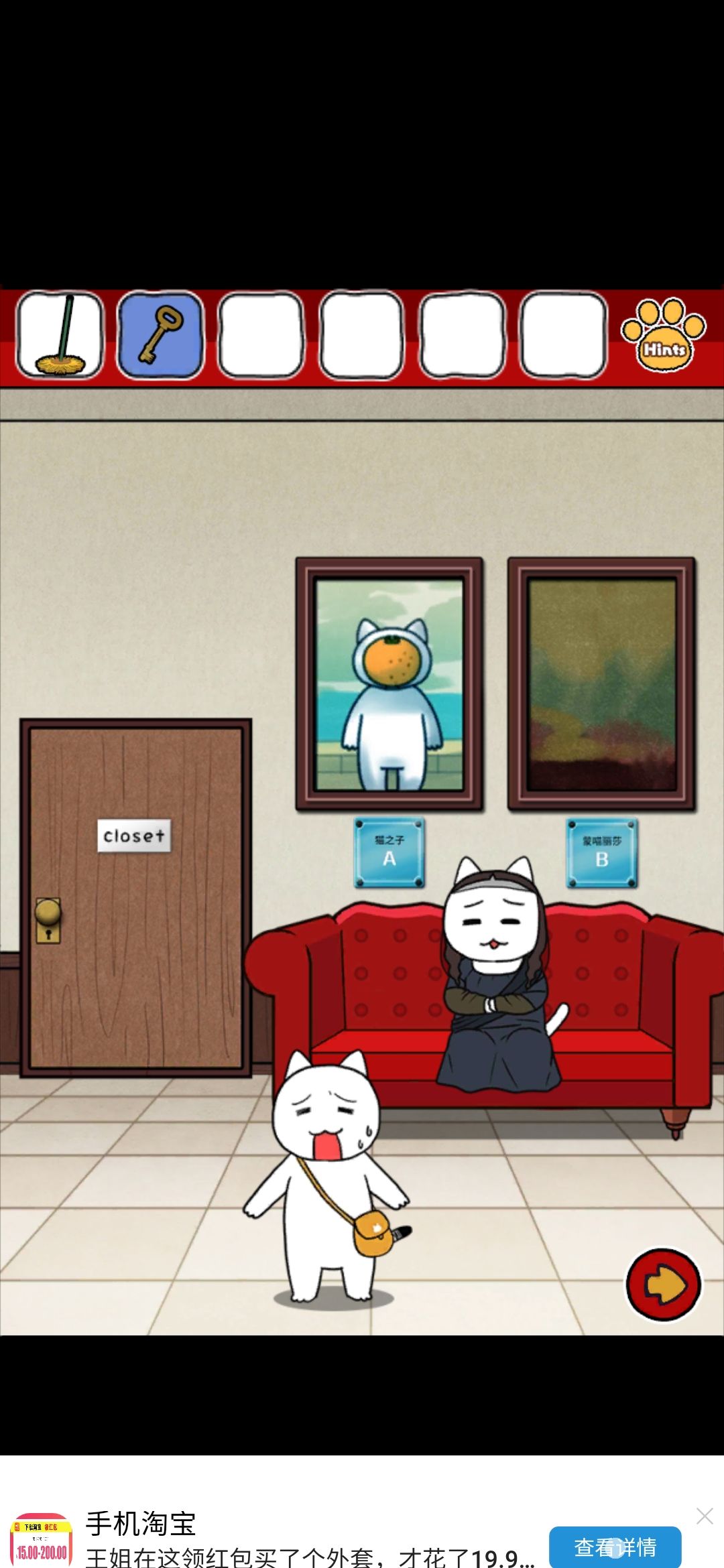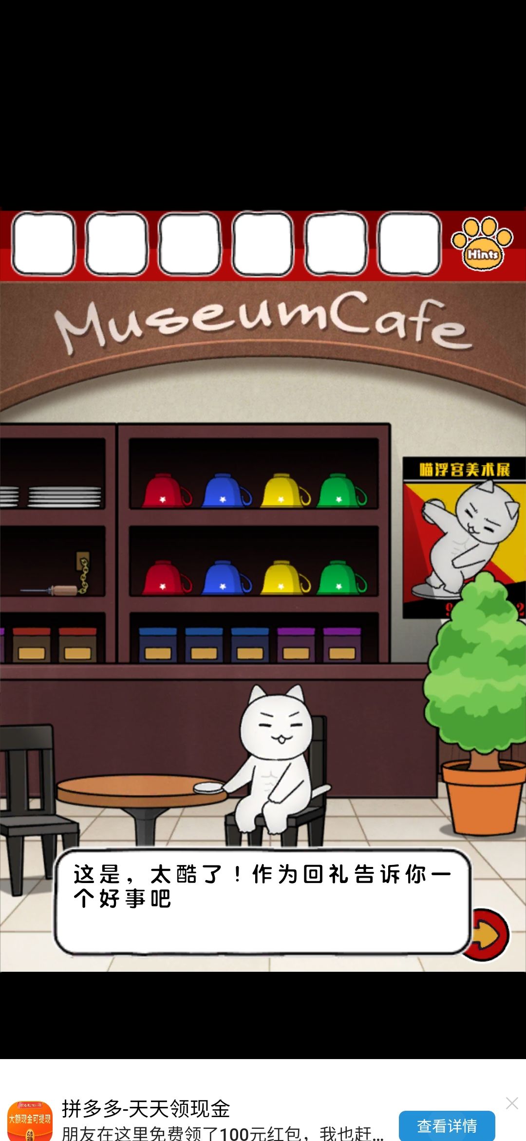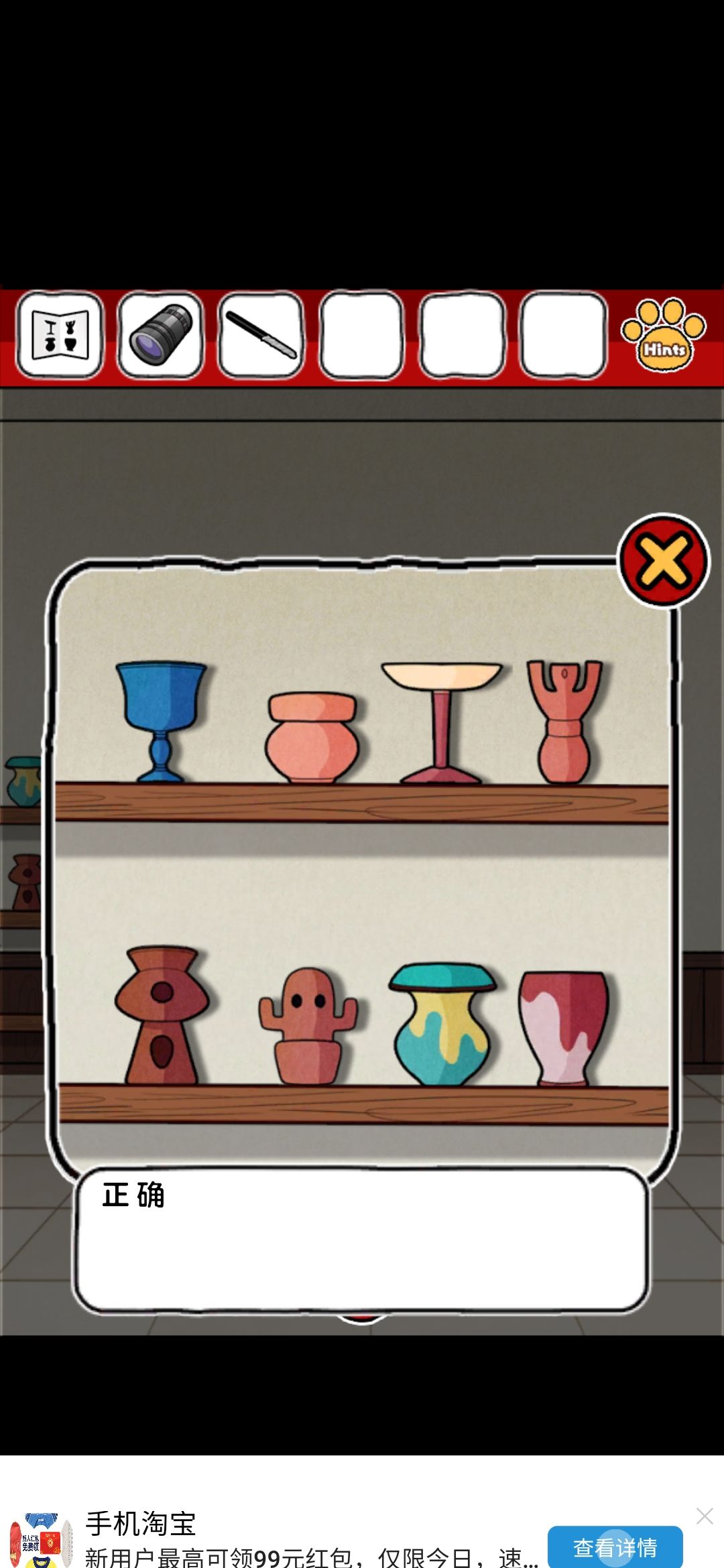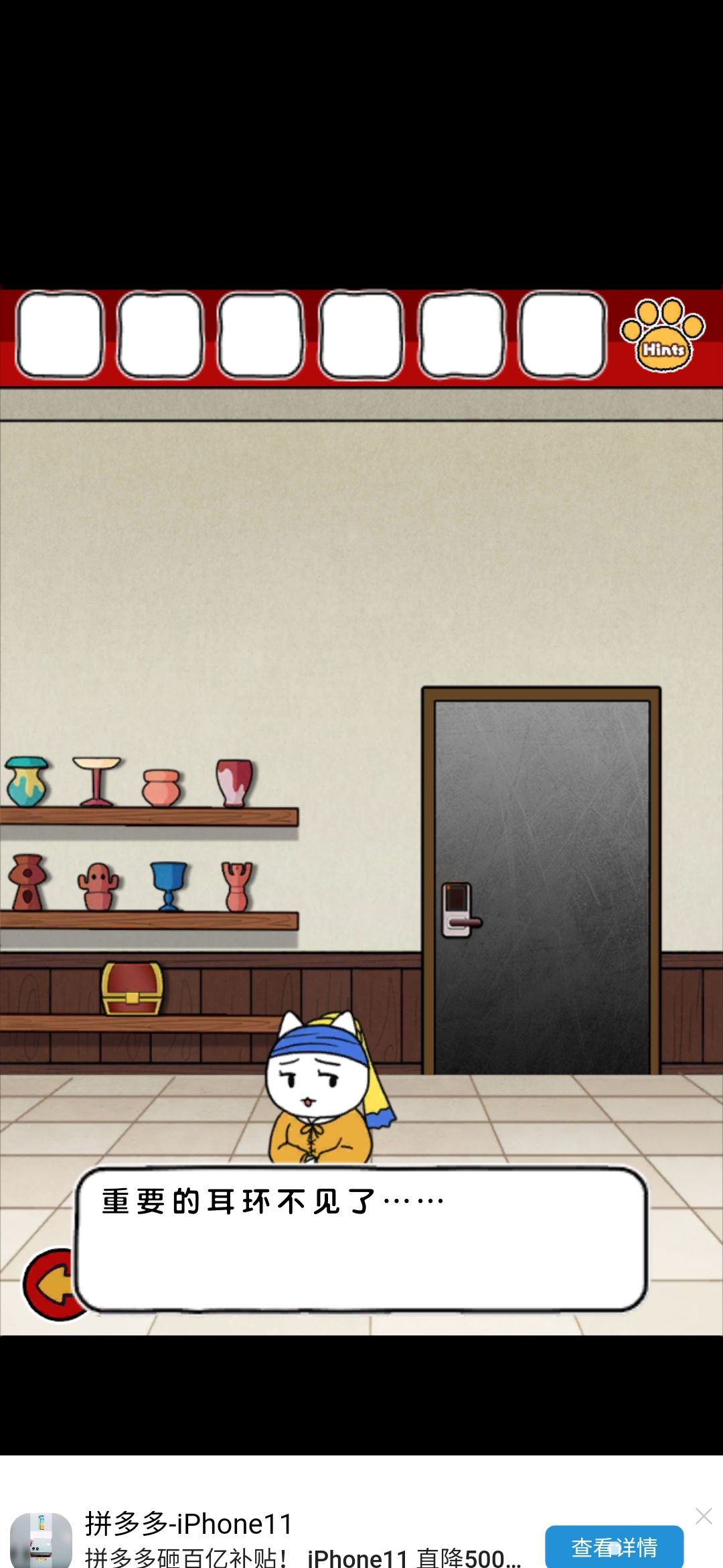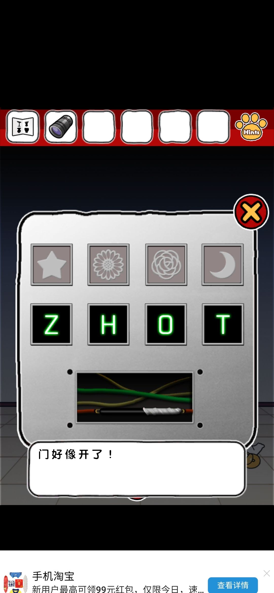 评价:emmm整体画风我还是比较喜欢的,可爱中带着丝丝沙雕,难度系数不太大,就是个别点,需要非常细心才行,比如那个我心心念念却和我擦眼而过无数次的钳子,比如那个玫瑰下面的柜子O,还有那个那个拿狗粮的环节,(这个其实还好吧,就是当时一直以为密码只有红色,不太明白黄绿是干什么的233)除此之外也没啥特别难的了~而且还有免费的提示,实在找不到线索也可以看一下,也有看广告能直接拿到答案的~我就用了两次,有没有限制次数我也不清楚~满分制5分的话,打分4.7吧,扣分点大概就是,有点简单233,没啥太大难度,而且有点短小,不太过瘾,刚起兴就完了,希望能多做点~(顺便小声逼逼,我真的太喜欢这种简单粗暴没啥太多剧情的游戏了