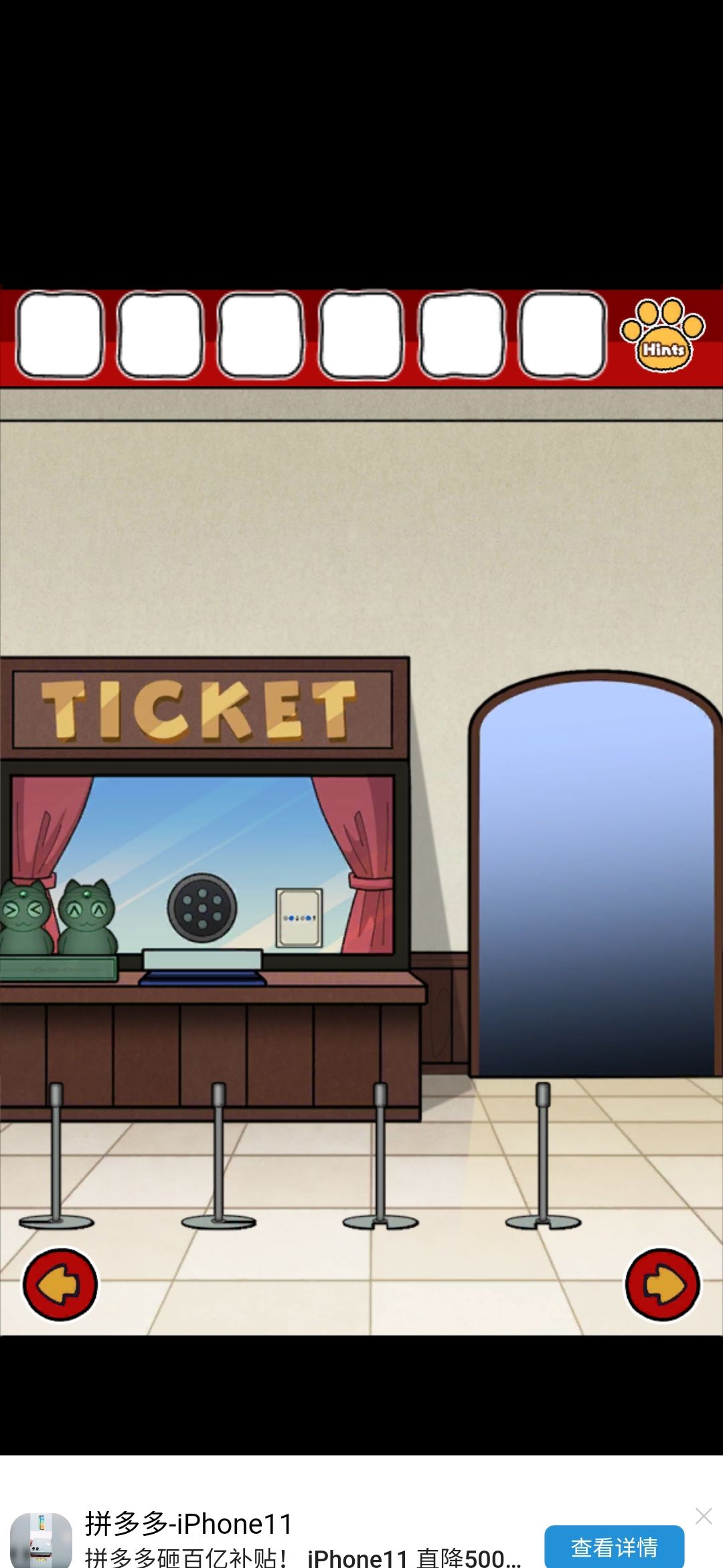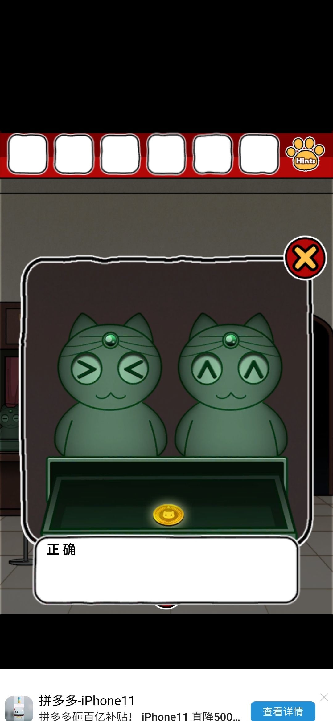 在下图中的四个护栏那可以看到底座的开口方向不一样,按照这个顺序><∧∧,输入到那两绿色猫猫那里,眼睛的位置,拿到硬币(第二个杆上面位置得到消息4/2=2在后面会用到)