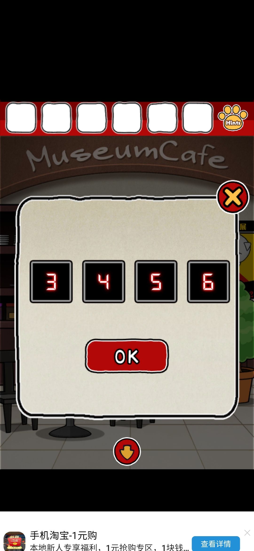 海报上的信息是9/3~12/2,结合之前得到的4/2=2,就是3~6,所以密码是3456,然后打开开关(哈哈哈哈哈就是这儿!!我试了好多密码!什么9312啊什么3642呀,=_=一直没反应过来,算是这个游戏比较难的一个环节了)