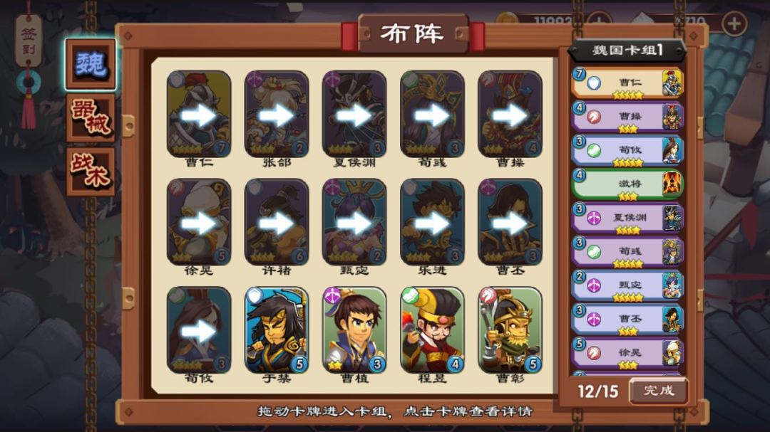 4.乐进:伤害一般,类似蜀国的星彩,低费稍微能抗的武将,困难最后一关获取,获取难度稍高,容易培养。