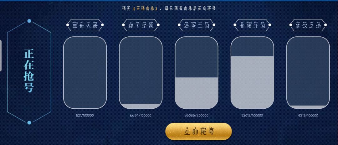 二、请大家先在【申请资格】提交申请,申请成功之后请前往抢号池参与抢号。抢号实行先到先得的原则。抢号成功即代表您已经获得体验服的资格