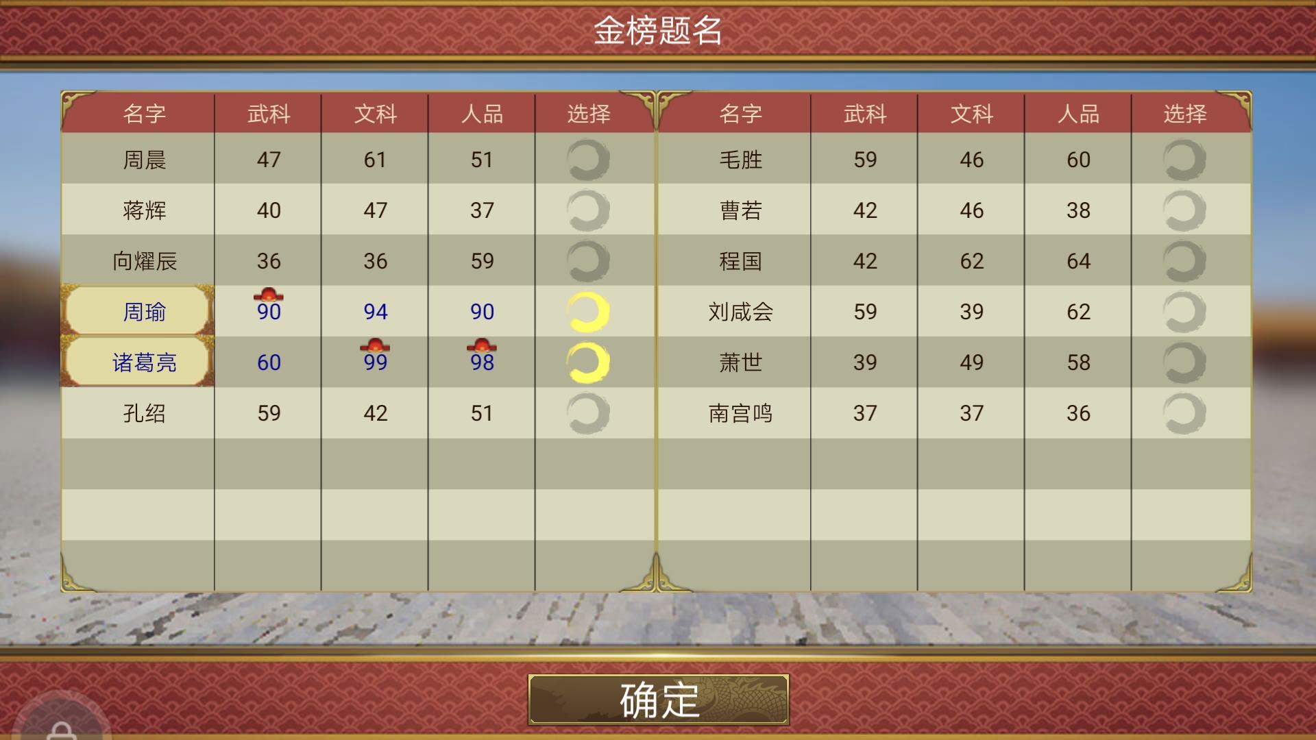 周瑜和诸葛亮一起招到了,开心。不知道后面概率刷高了一次最多可以出几个名臣