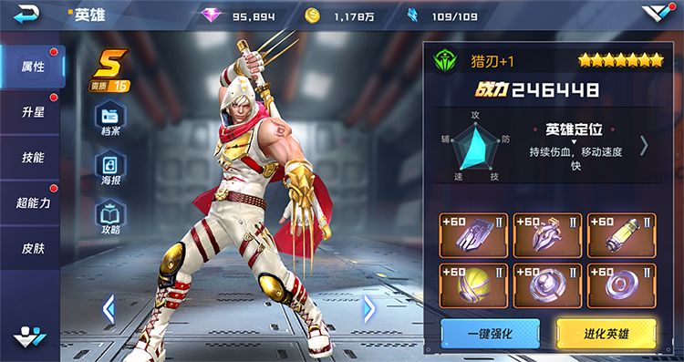 猎刃拥有强大的攻击属性。技能拥有持续伤血,移动速度快的特性。但是英雄上手比较难,连招比较看手速和释放时机。