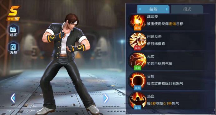 草薙京拥有强大的必杀技输出。技能拥有强力爆发,削减对手怒气的特性。但是英雄上手比较难,连招比较看手速和释放时机。