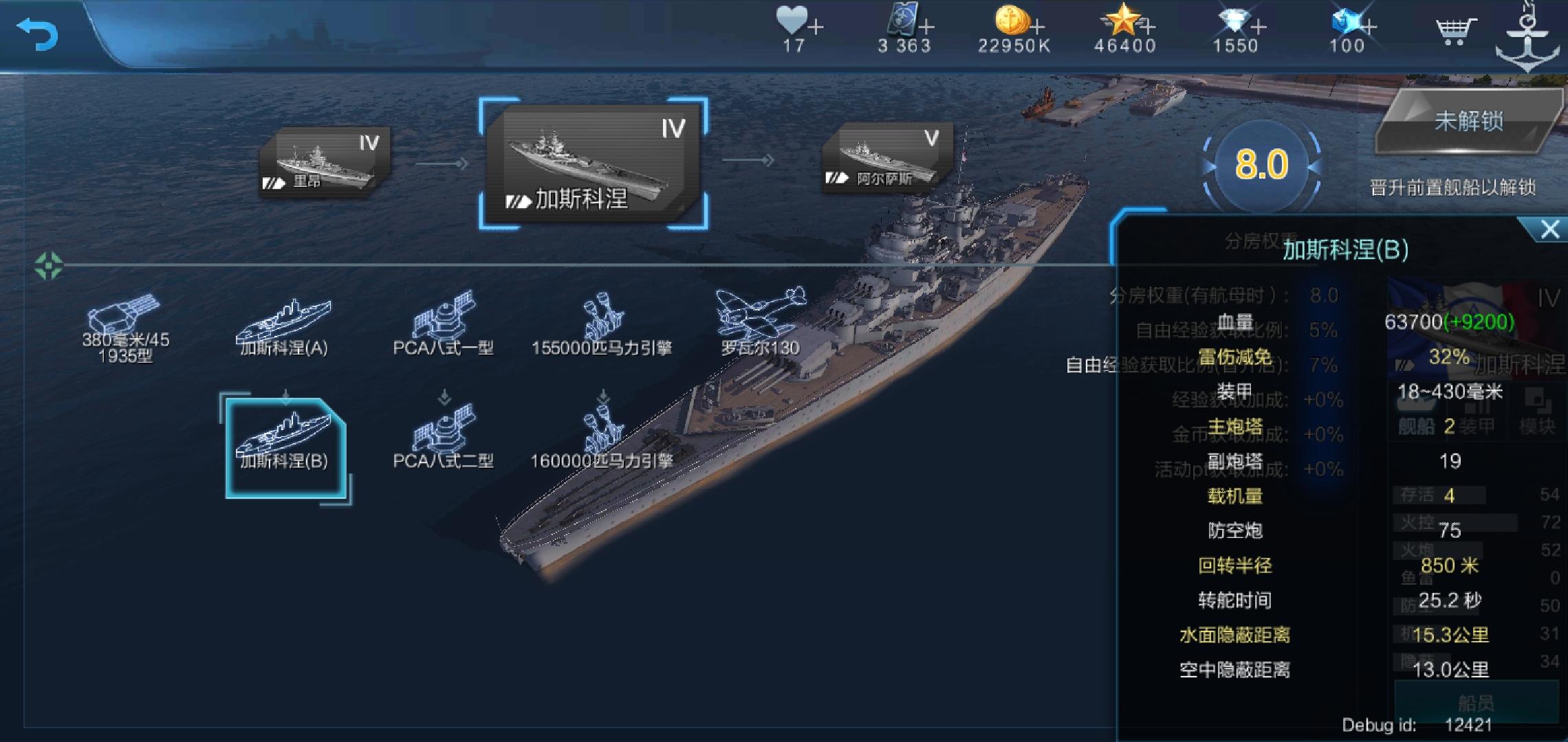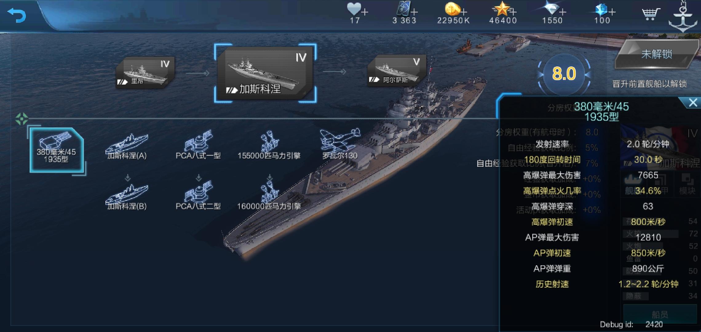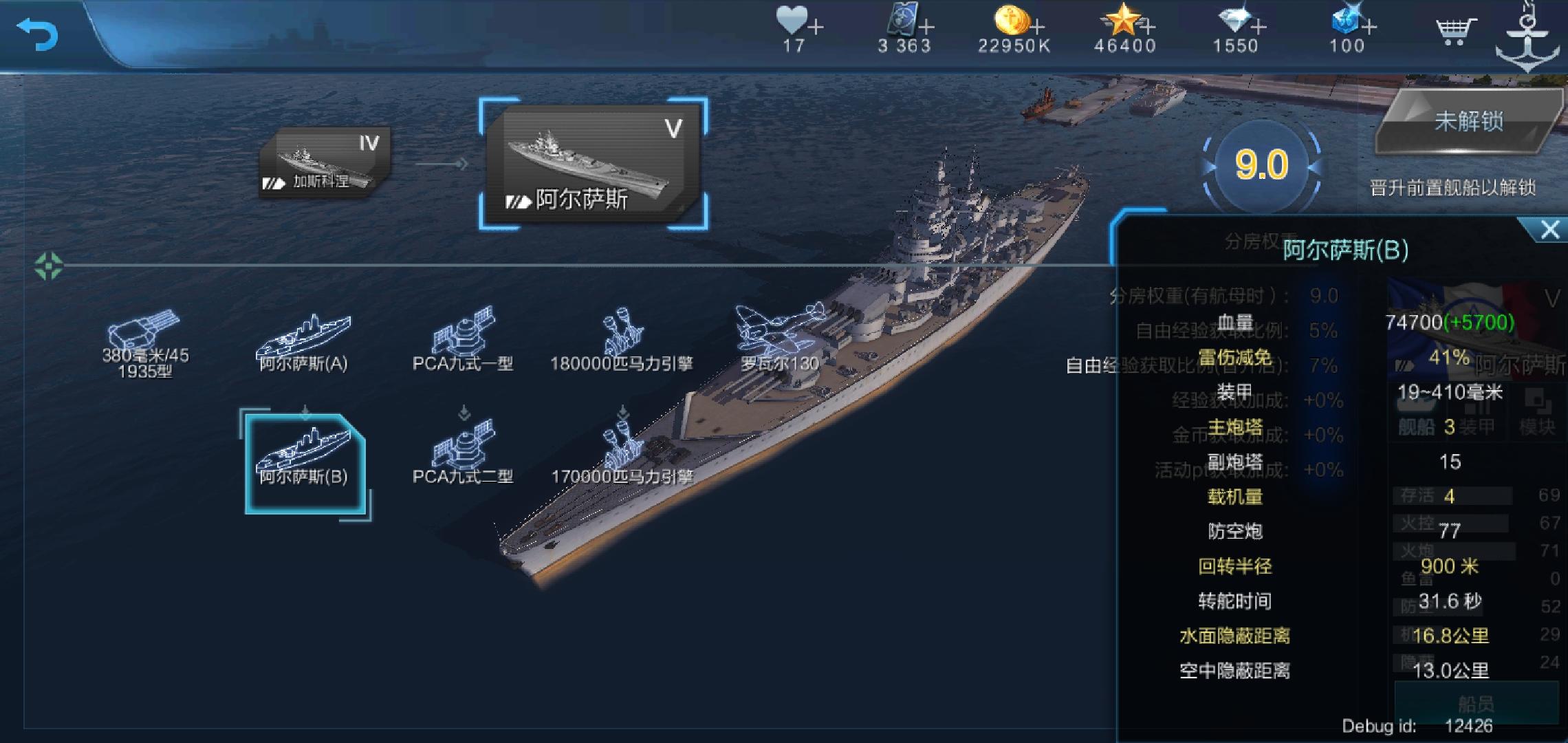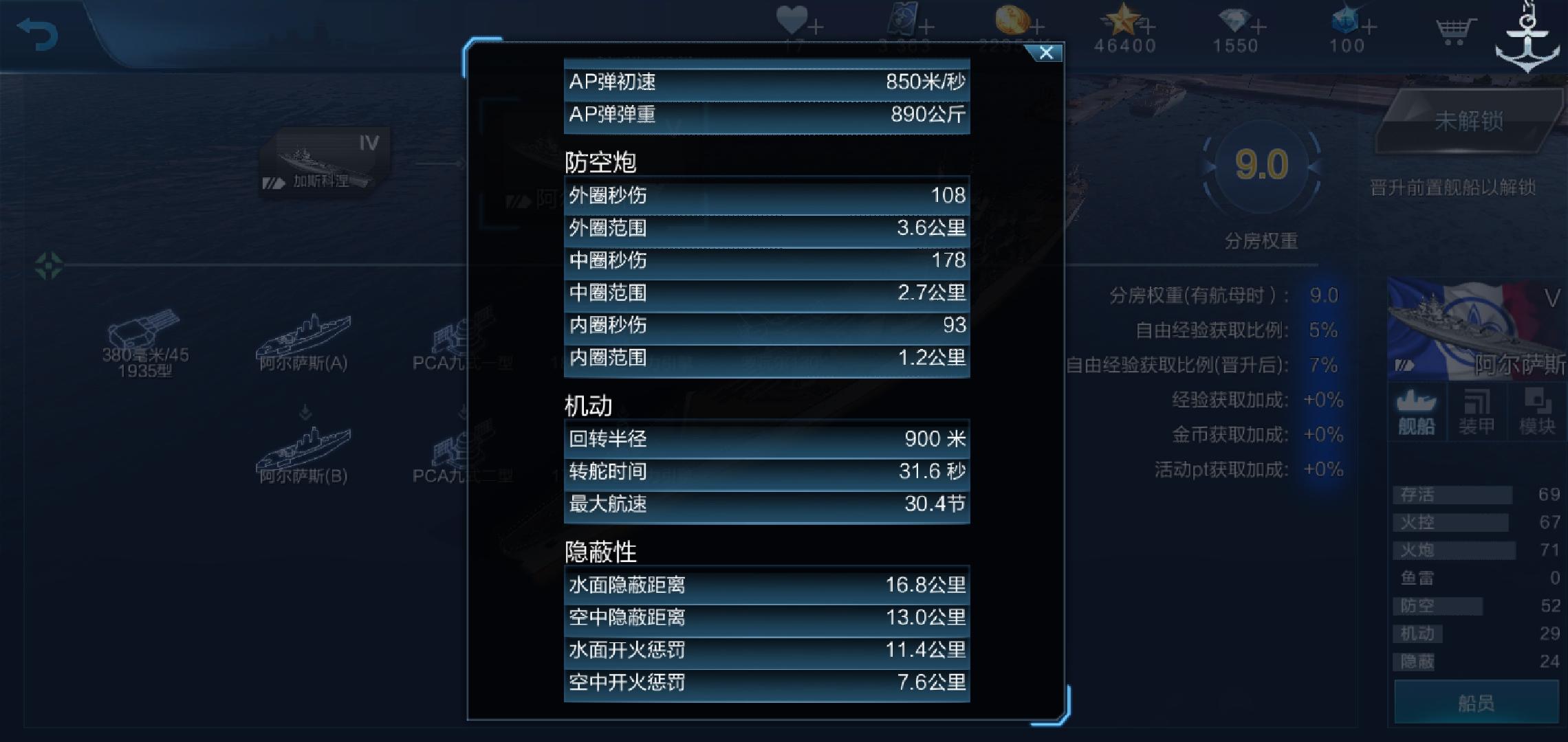加斯科涅比八级北卡血量都低8根管子2.0的射速有点低,不过你们如果搞了法系专属消耗品主炮再填装的话就当我再放屁,阿尔萨斯7万多点的血9.0权重有点不合适吧,狮子8.8都有80200,生存是个问题啊我知道你们想说阿尔萨斯雷抗高但是这个血量在9级房能抗住饺子12根9700伤害的鱼 雷吗或者大凤的12根8000伤害鱼 雷吗?以上就是我想说的,其他欢迎在下面补充