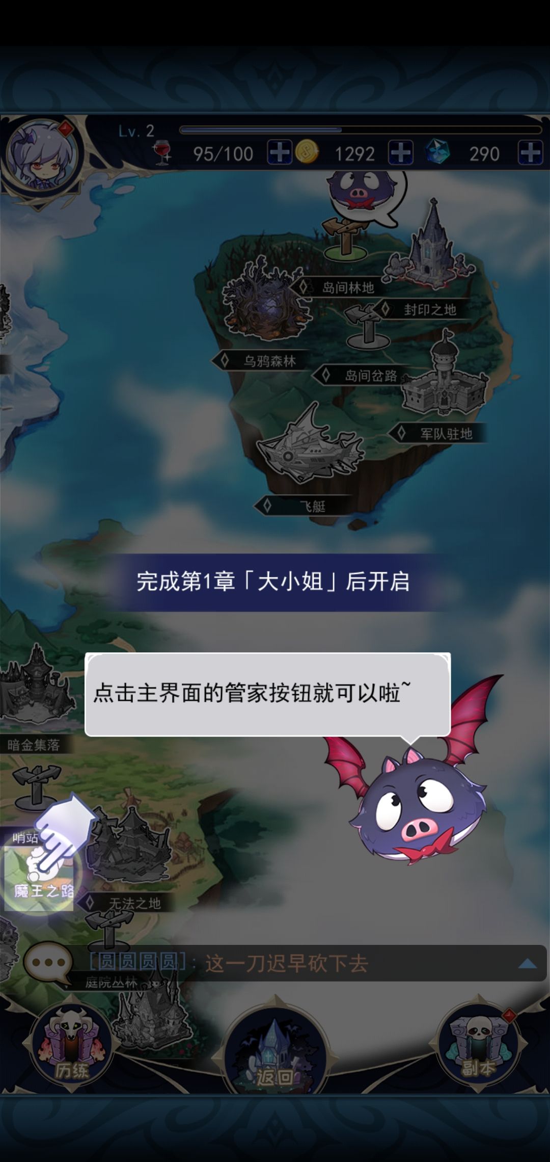 不小心进入这个界面,新手教程强制让点这个关键点了显示未开放。。完成第一章大小姐后开放