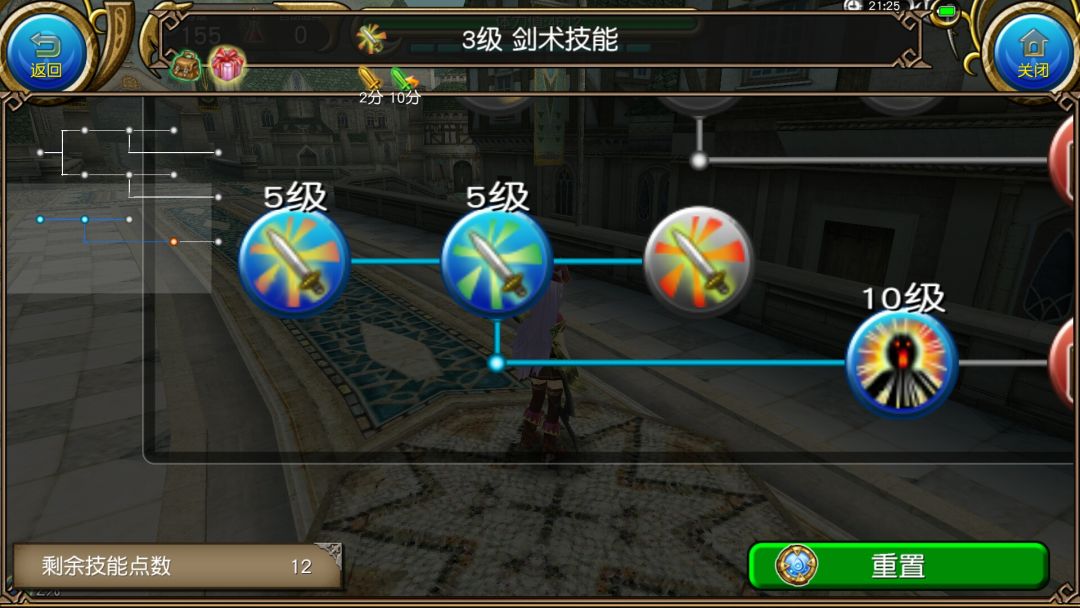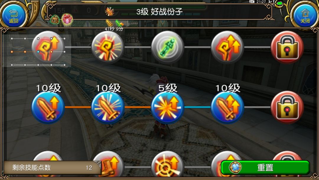 剑术技能:战吼10,前置技能都点5,该技能为推荐技能,虽然会加很多攻击,但是仇恨高,慎点。