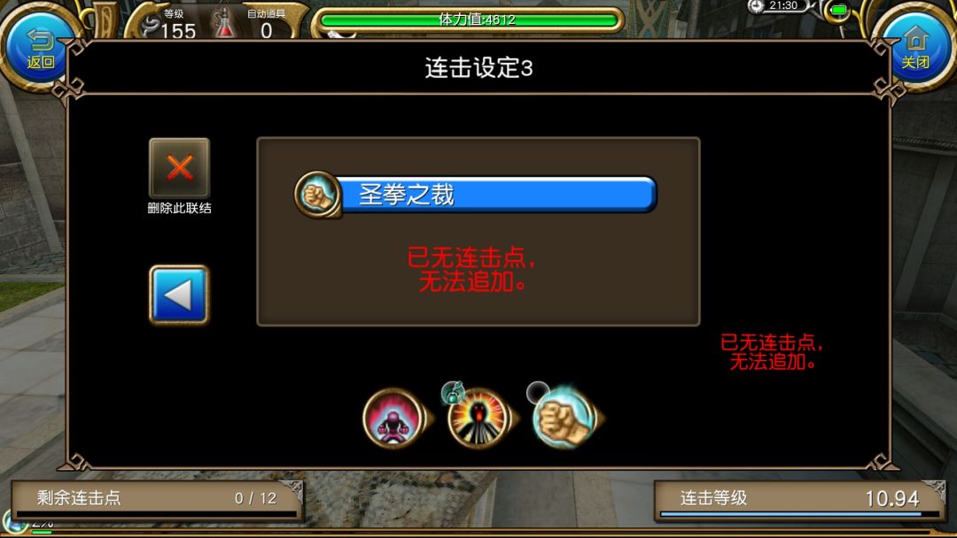 祭祀技能:圣拳点1,用于断连,可用星石代替