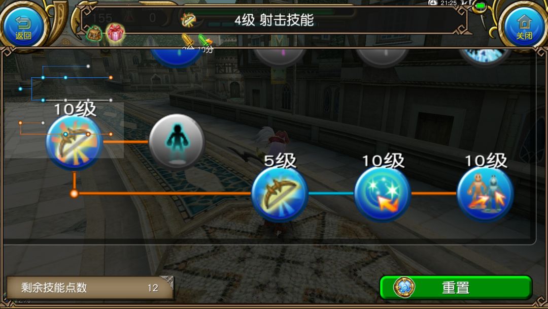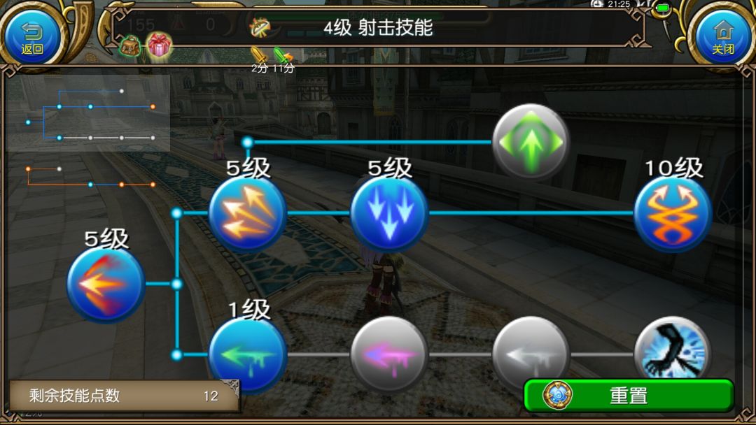 射击技能:威力5,涡轮5,箭雨5,交叉10,粘液1,射击要领10,远程5,回气5,分身10