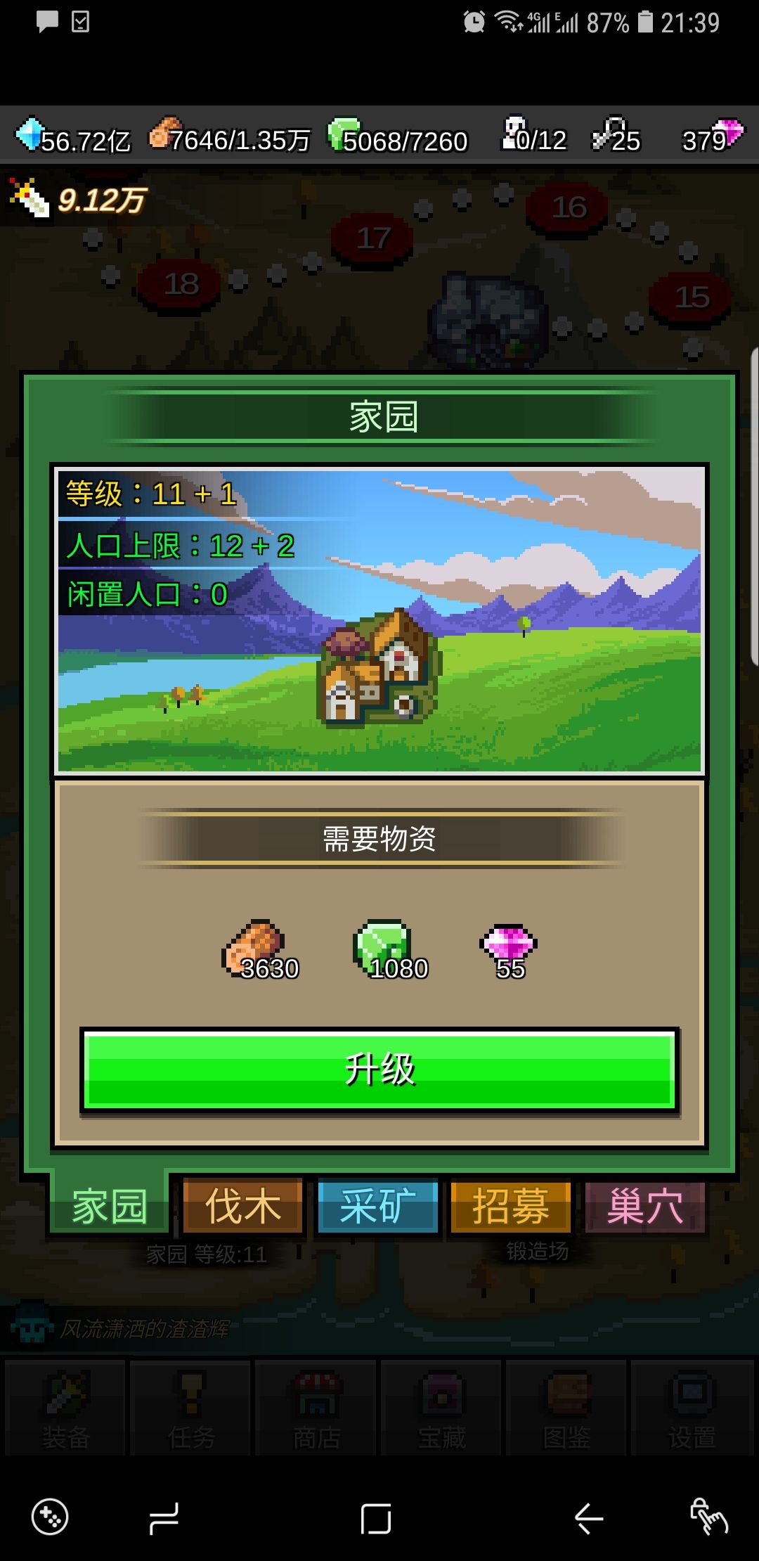这是一个挂机游戏,所以资源等级越高收益越大,你还可以用木材和石头挂机装备!