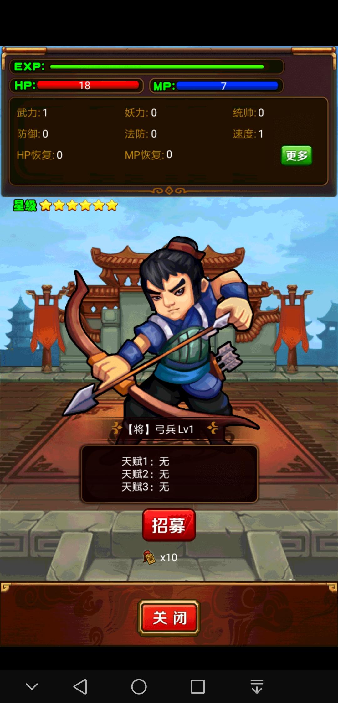 名字就是兵种,天赋【无】阶职全是【将】原画也不精美。不愧是1星,灰常符合设定。他们的作用就是丰富一下游戏内容