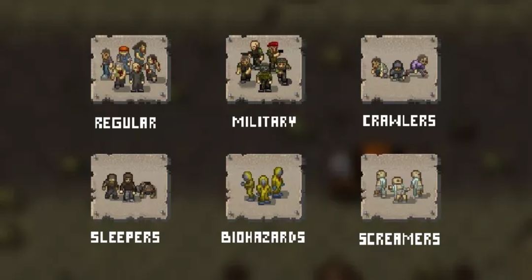 爬行者为游戏中速度最快的僵尸种类之一,它们除了会出没在普通僵尸出没的地方之外还会出现在地堡里,其速度之快让不少新手断送性命。下图为3种不同的爬行者: