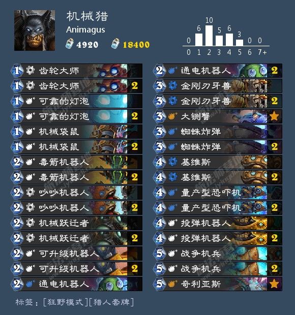 这套尘数为【4920】尘,机械猎也算是万年青的卡组了,许多玩家就是靠机械猎上的传说。