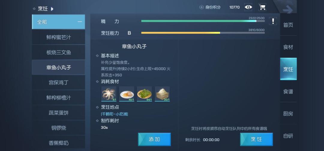 与章鱼小丸子类似的是,像铜锣烧、孜然土豆这些食物都是可以增加生命值和火系攻击的,但是由于这些菜分别是玩家达到不同厨师等级时所制作出来的,因此厨师身份等级越高做出来的菜,增加的生命上限以及属性攻击也就越高。