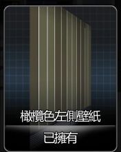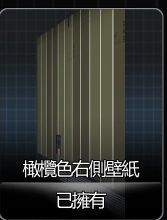 此类家具共有两种颜色,灰色和橄榄色。每种颜色分为天花板,中央墙壁,左侧墙壁,右侧墙壁四张壁纸。