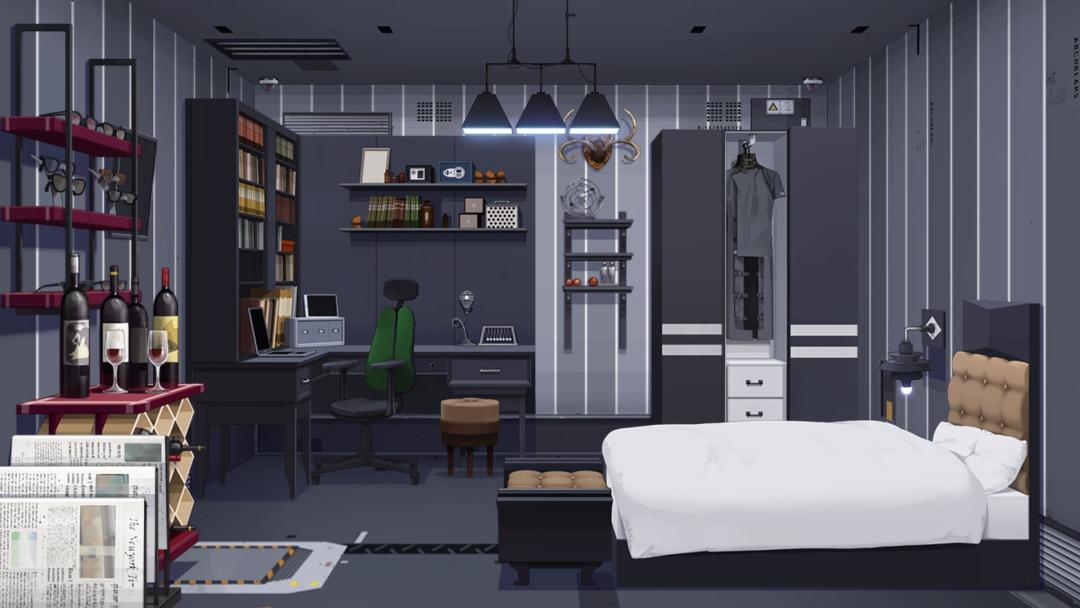 现代化主题的小资情调与亚历克斯的私人收藏简直绝配!灰色壁纸不必多说,监视器选择了比较不明显的拱形监视器,是为了刻意淡化实验体环境对房间的影响。