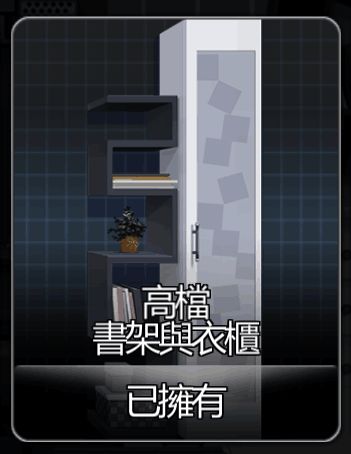 此类家具会被靠墙摆放在左侧墙壁边,因其款式多样且功能根据实验体而有不同差异而命名。此类家具数量最多,且所有的紫色家具均属于此类。