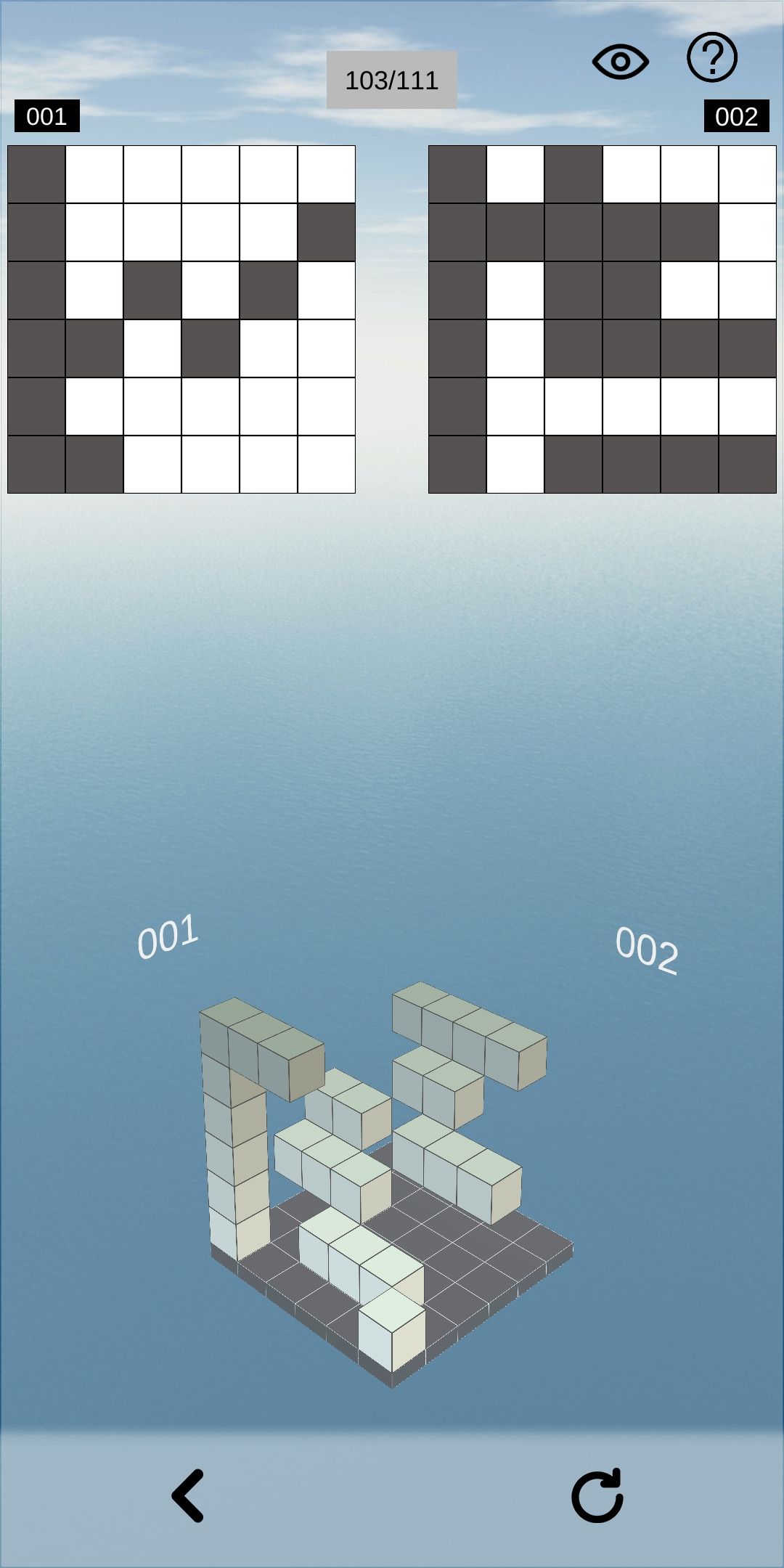 卡在了103,眼睛坚持不住了,这个悬空的很难确定位置,做了好多草图还是错的,能不能改进一下不同层用不同颜色区分。明天继续冲击争取通关!