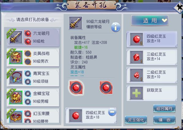 装备开好孔之后,仙迷们可以通过击败八部天龙、上古神兽、或者商城购买等方式获取灵玉,并进行『灵玉镶嵌』提升装备属性。