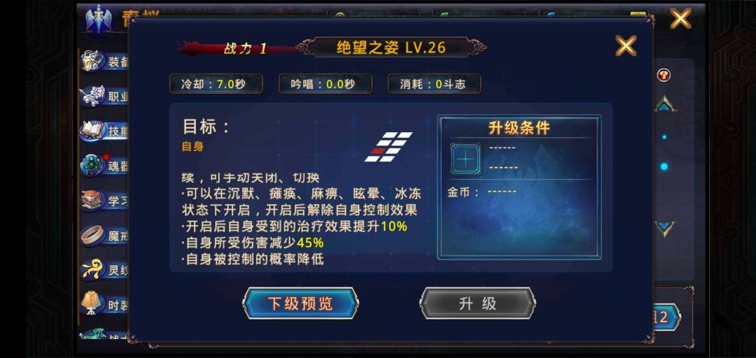 殊死一搏!俗称!屁!股!血量上限增加输出!无畏也可以增伤啦!可26级升级特技!低血量时!输出增加!
