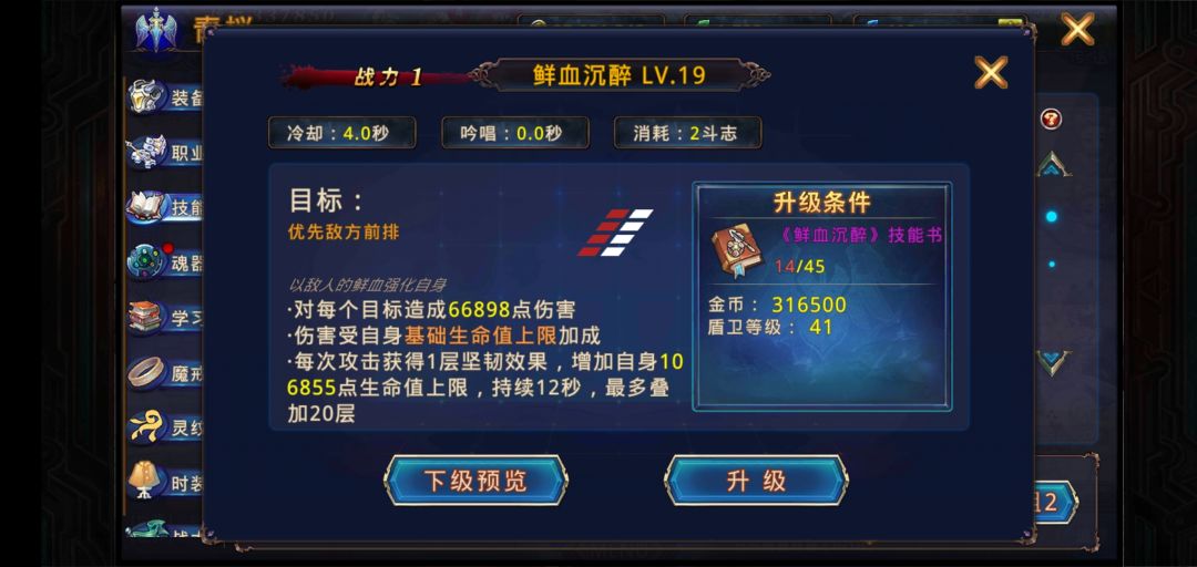 buff技能!提升基础生命值上限!!意味着!更肉!伤害更高!一共20层!叠满血量轻松翻倍!