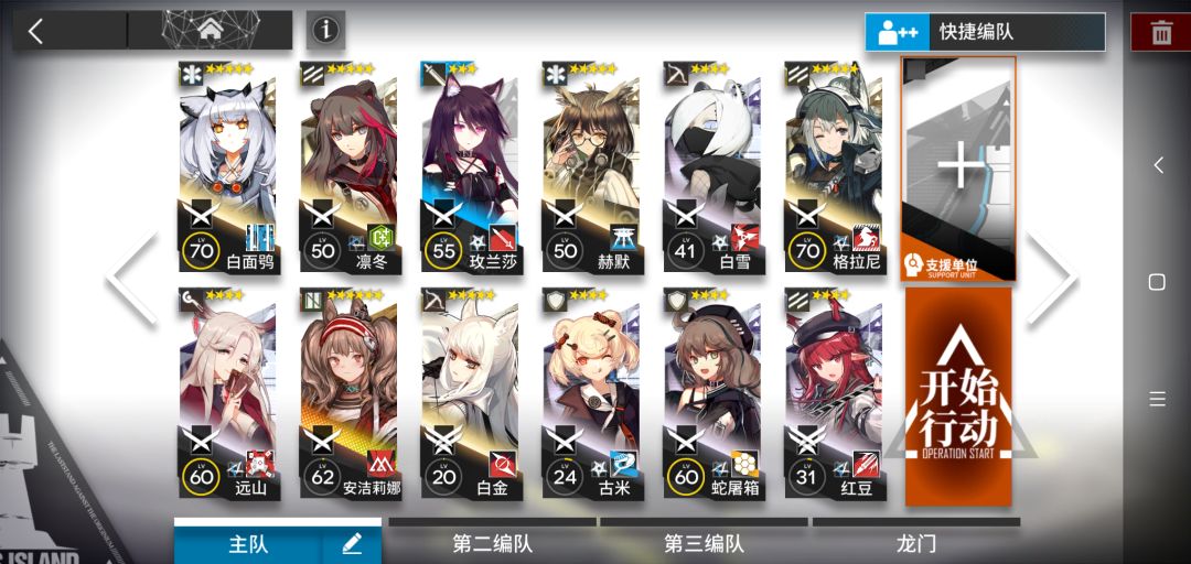 接着上白雪,上法师,群奶妈,这个建议先上输出最后上奶妈,如果抗不住可以先奶妈,至于白金这个是个人喜好你可以换成个射程够的任意输出或者多个奶妈也可以