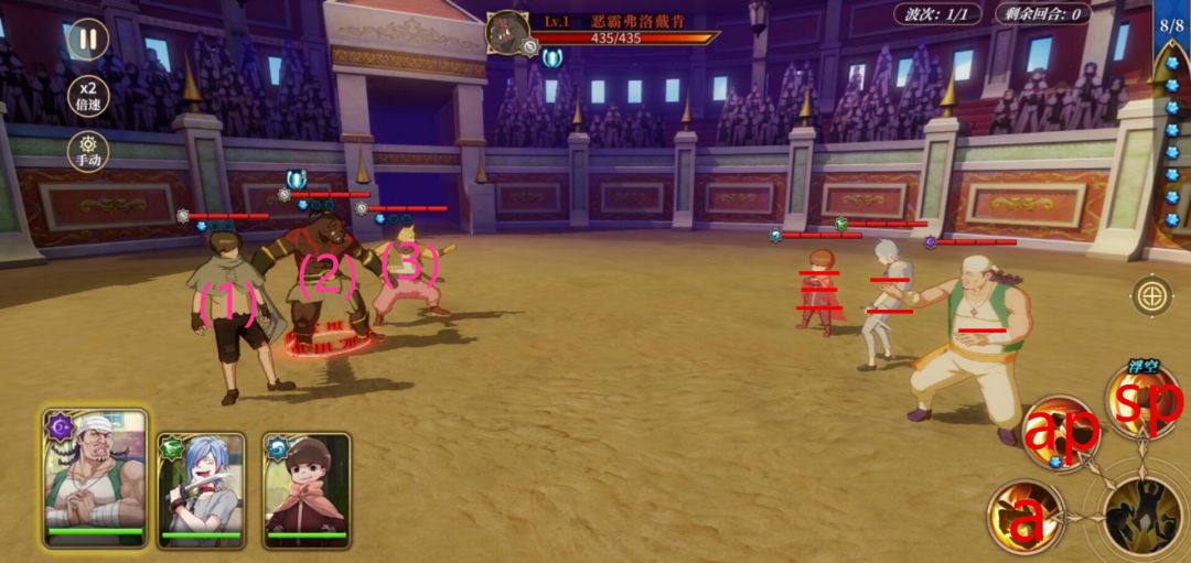一a(1)就是我方一号位用一技能打对面的(1)号位