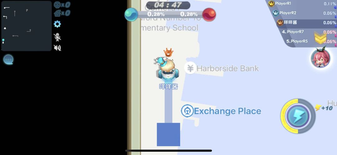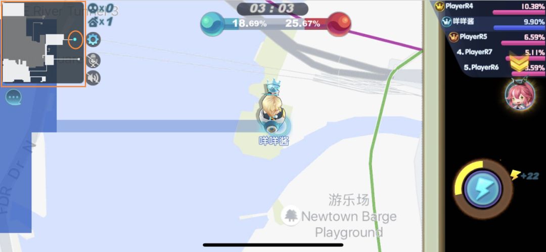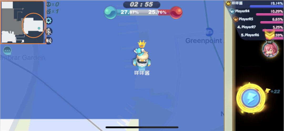 进入战斗后,所有人获得一块初始领地,左上角小地图会实时显示占领情况呢~(白色是我方,灰色是敌方~)