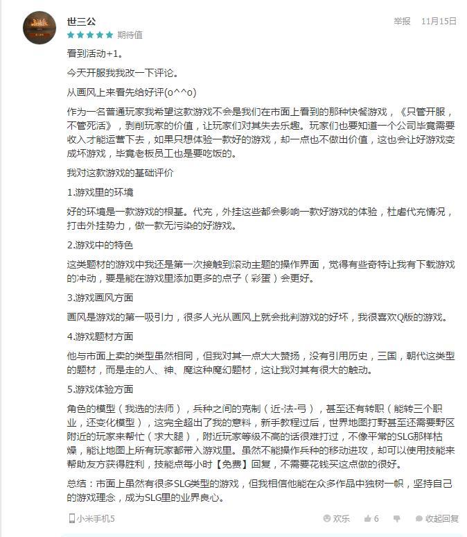 第一位小伙伴在体验完游戏以后,给出了很详细的评价和建议,谢谢支持,我们会好好加油的。