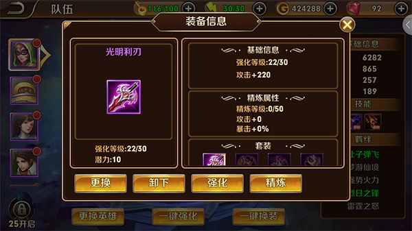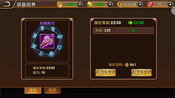 在游戏中,星灵装备可以通过强化来提高装备基础属性。强化消耗金币,强化等级越高,消耗的就金币就越多,装备强化等级上限为玩家等级的2倍。装备的强化有一定几率发生暴击,当出现暴击时,装备等级有可能会突然提高几级,可突破当前强化上限等级。